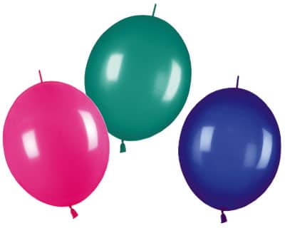 I palloncini Link detti anche Annodabili hanno un design unico a doppia estremità in modo che possano essere legati insieme per creare un arco o un effetto colonna! Puoi creare un ingresso trionfante a una divertente pista da ballo, palcoscenico o realizzare delle fantastiche decorazione di palloncini all’aperto. Se acquisti uno dei nostri kit di palloncini e bombole elio, puoi completare il tuo ordine con alcuni palloncini Link.