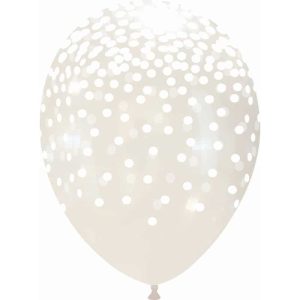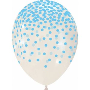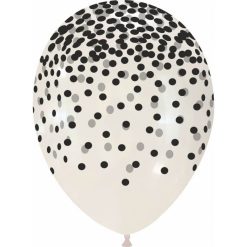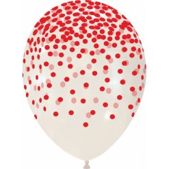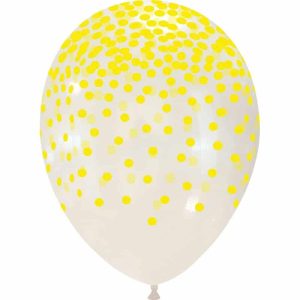 Palloncini trasparenti da 12″ con una cascata di coriandoli colorati stampati dappertutto. Disponibile nei colori: rosso, giallo, verde, bianco, viola, blu, arancio e fucsia.