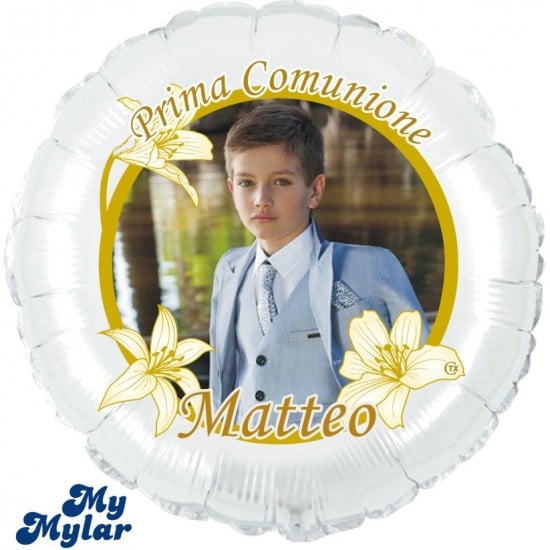 Palloncini Prima Comunione + Foto e Nome Elegante 18″